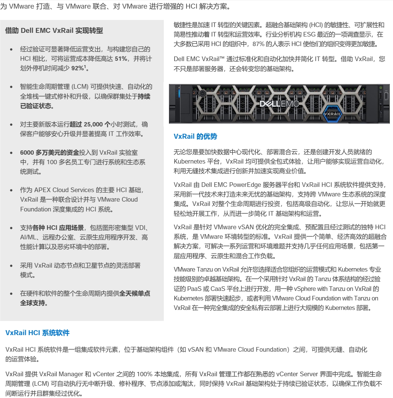 為 VMware 打造、與 VMware 聯合、對 VMware 進行增強的 HCI 解決方案。